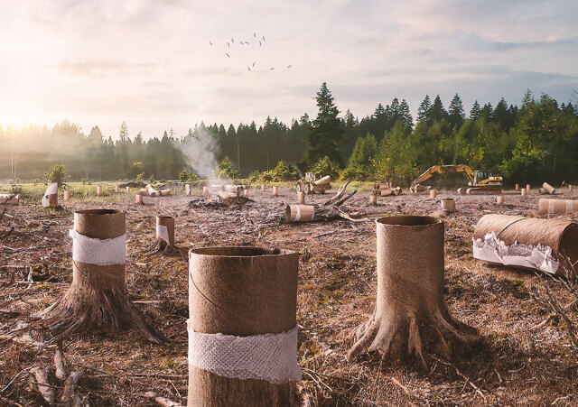 Each year, about a million hectares of the world’s remaining Northern Canadian Native Forests, home to salmon, grizzly bears, lynx, wolves, moose, caribou, rabbits, billions of migratory birds and others, are clearcut, chemically coated and then rolled into toilet paper (TP).